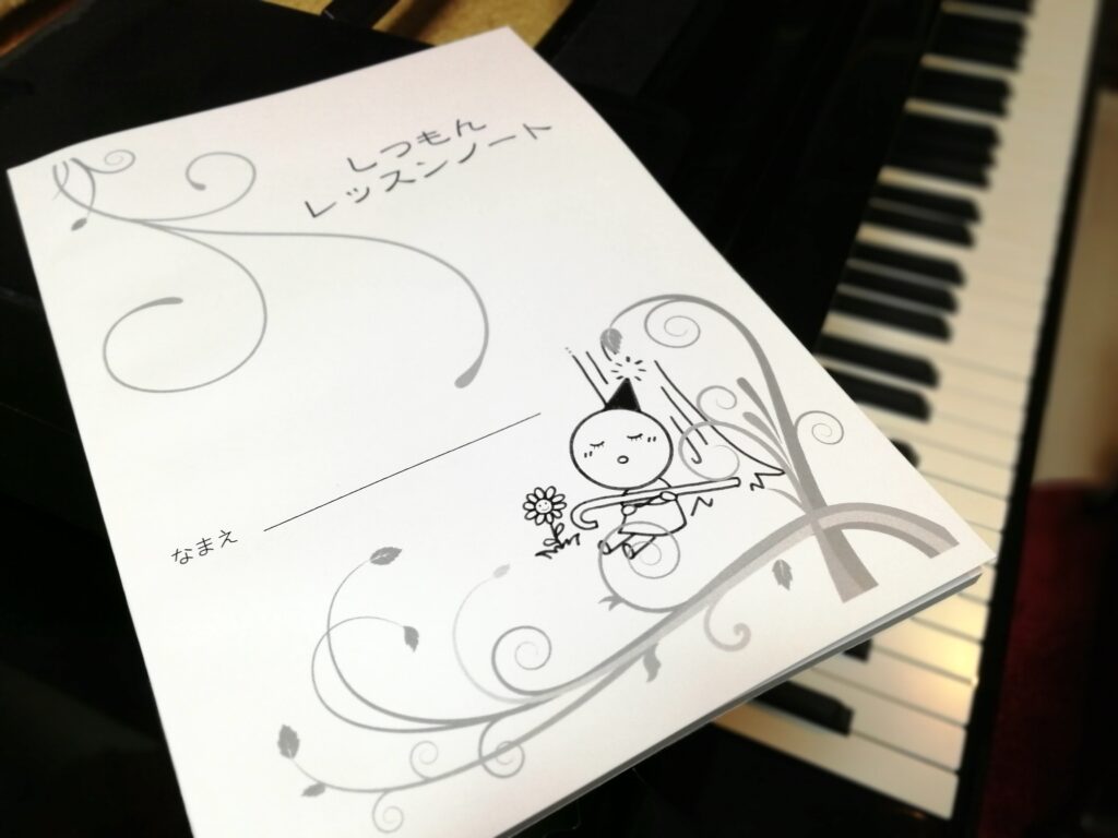 2つ目は、「しつもんレッスンノート」って、お教室の生徒たちが質問に答えながら1回1回のレッスンの記録をつけるノートを作ったの。